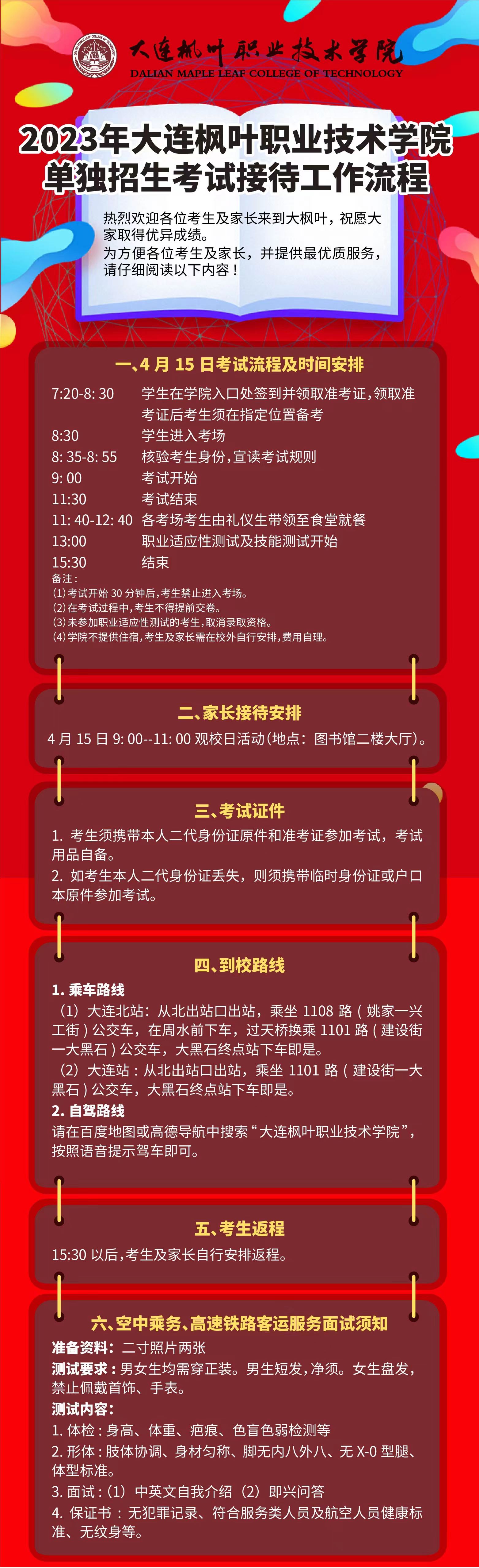 大连枫叶职业技术学院2023年单独招生考试接待流程