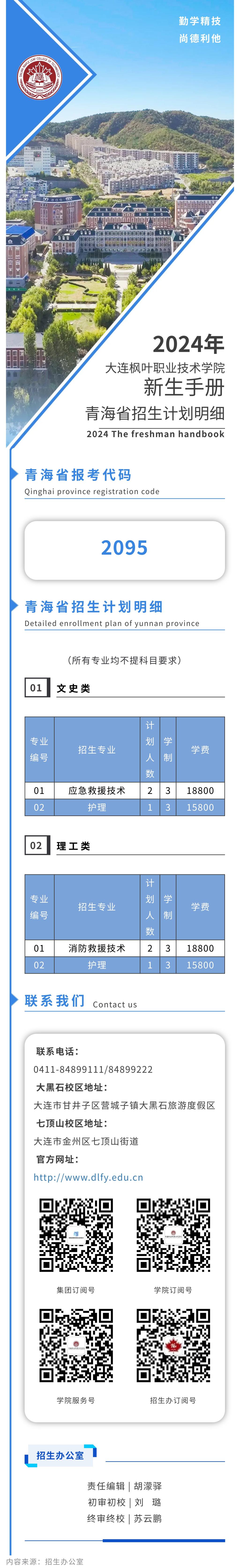 2024年大连枫叶职业技术学院青海省招生计划明细