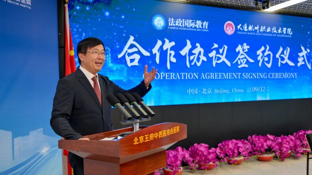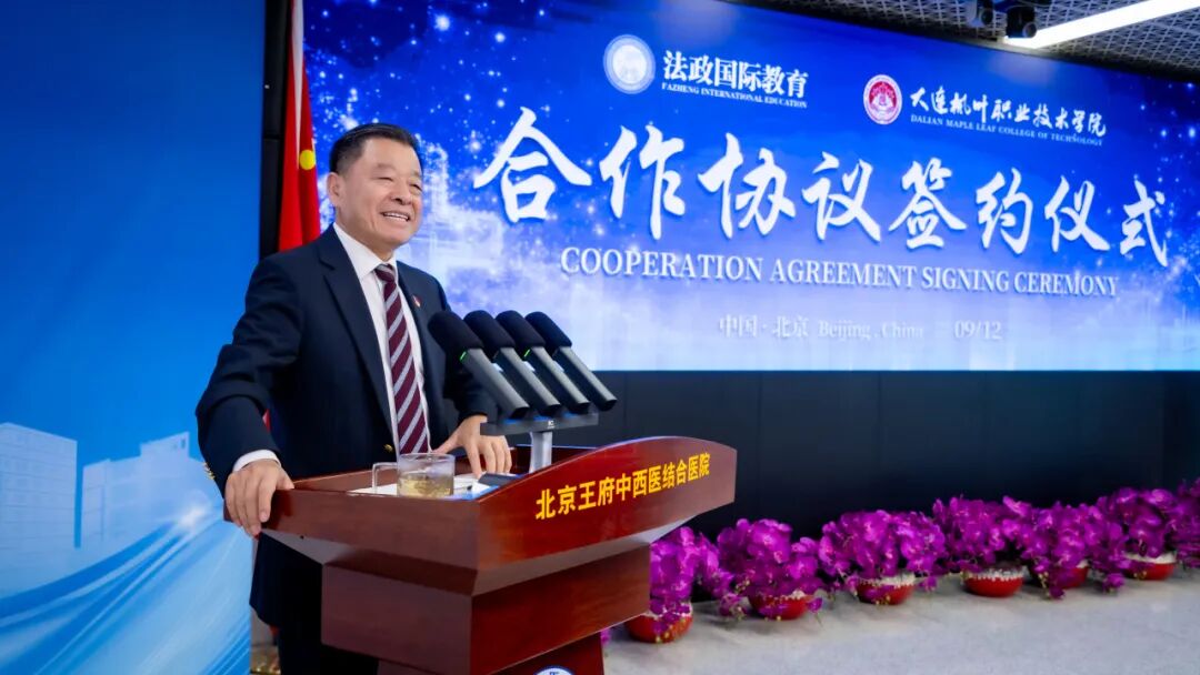 2025年9月12日,大连枫叶职业技术学院与法政国际教育投资有限公司合作协议签约仪式,在北京王府医院门诊楼隆重举行。国家卫生健康委科学技术研究所副所长果吉尔锑,北京法政实业集团有限公司董事长、法政国际教育创始人、北京王府中西医结合医院董事长兼院长王广发,中国驻美国大使馆教育处原公使衔参赞、教育部国际司原司长、南南国际教育智库研究院理事长岑建君等重磅嘉宾出席,共同见证这一关乎护理教育高质量发展的重要时刻。