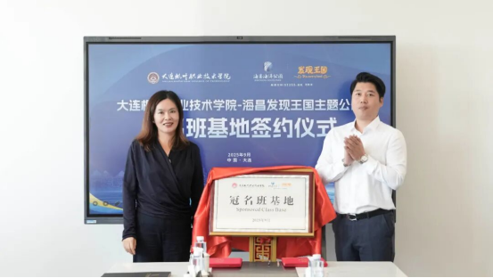 秋兰飘香,硕果盈枝。为深入贯彻落实国家关于深化现代职业教育体系建设的战略部署,推动教育链、人才链与产业链有机衔接,9月29日,大连枫叶职业技术学院与大连海昌发现王国主题公园有限公司隆重举行 “冠名班基地”签约暨揭牌仪式。标志着双方在产教融合、协同育人的道路上迈出了实质性、创新性的一步,将为区域文旅产业高质量发展注入新的动能。