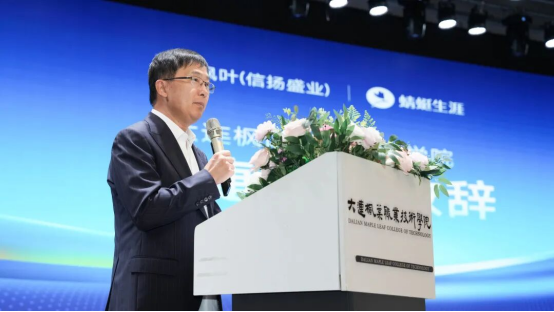 知蜻(大连)科技有限公司董事长伏全皓在发言中分享了知蜻科技在科技驱动生涯服务领域的实践经验,并宣读了关于成立“枫微蜓未来科技”的初心与愿景。他指出,未来,双方将协同教学优势、实训基地和互联网获客能力,推动微认证项目成为行业标杆,助力中国职业教育创新发展。