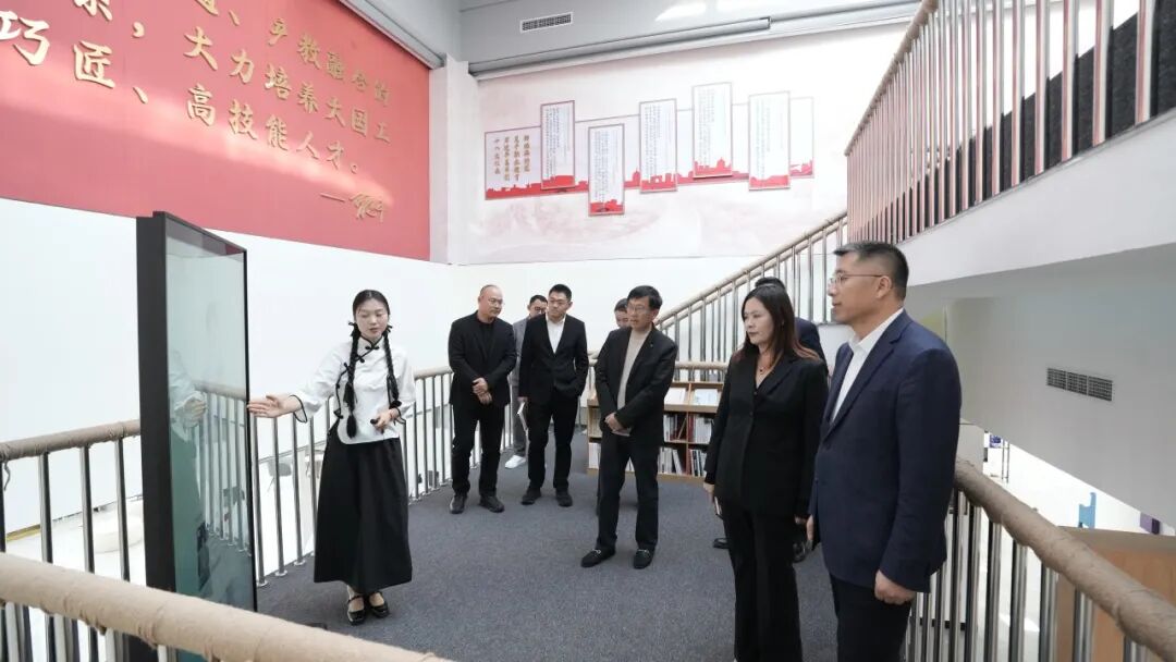 随后,在学院AI设备展示区与中华职业教育社社史馆,联通领导们详细了解了学院在AI教学实践、职业教育创新发展等方面的成果。看到学院将前沿技术与职业教育深度融合,为区域产业发展培养技能人才的扎实举措,联通领导团队给予高度认可,直言“深感震撼”,并对学院为职业教育事业作出的贡献表示肯定。