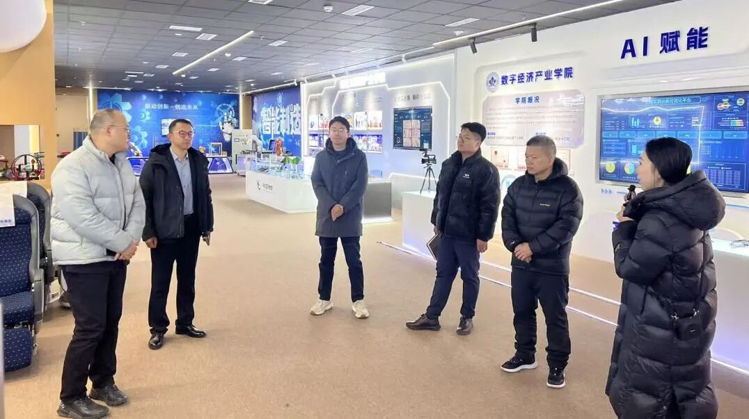 在学院领导的陪同下,大连联通一行先后参观了各产业学院实训室、开放式党建馆以及枫叶AI教学设备厅、碳中和·绿创未来馆、中华职业教育社社史馆等核心场所,详细了解学院教学场景搭建与学生实操训练情况,对我院紧贴行业前沿、强化实践能力培养的办学特色给予充分肯定。