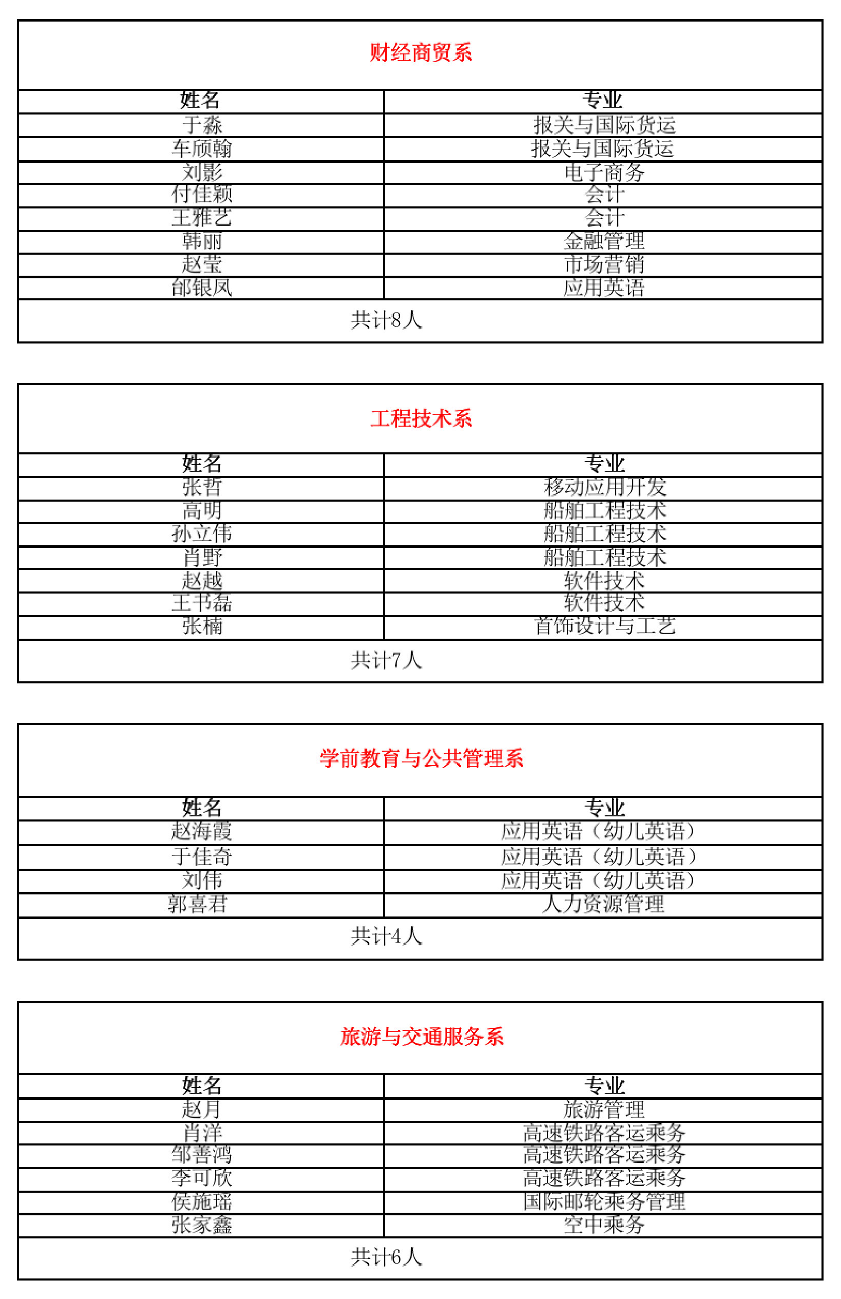 经过本人申请,班级推荐,二级学院审核,报校领导同意,现将初审名单(共25人)公示如下: