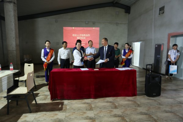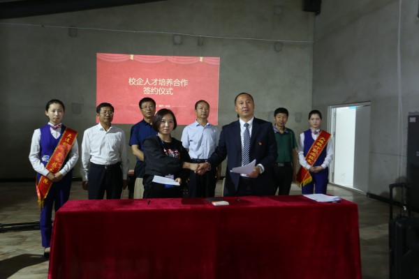 大连枫叶职业技术学院副院长解建国与朝阳企业签署校企合作协议