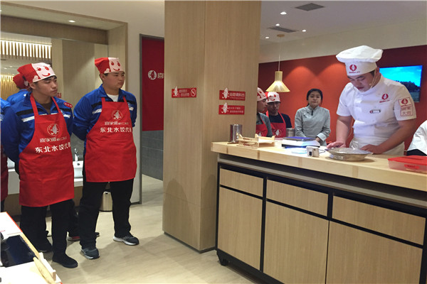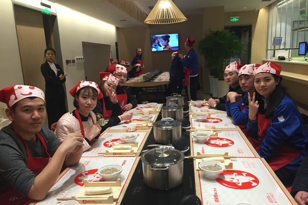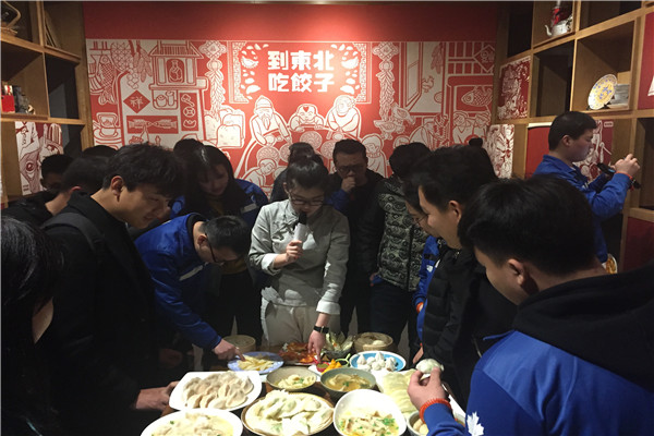 在参观博物馆后,同学们一起体验了水饺DIY,制作了喜家德特有的一字型水饺。一字形水饺的特点在于不仅咬一口剩一半而且还能夹得住,馅还能让顾客看的一清二楚,可以打消食客对食品安全方面的担心,一举两得。这种创新敢为天下先的精神也使同学们深受启发。午后在曾虎校长的带领下,参观了水饺大学并聆听了曾校长的讲解,了解喜家德的同时更引发了同学们对未来职业生涯的思考。曾校长表示喜家德需要大量的专业应用型人才,我校学生拥有一定的技能且肯上进,愿意为其提供就业机会。