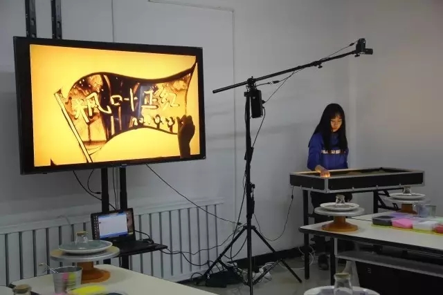 16幼师1班张萧同学进行沙画表演