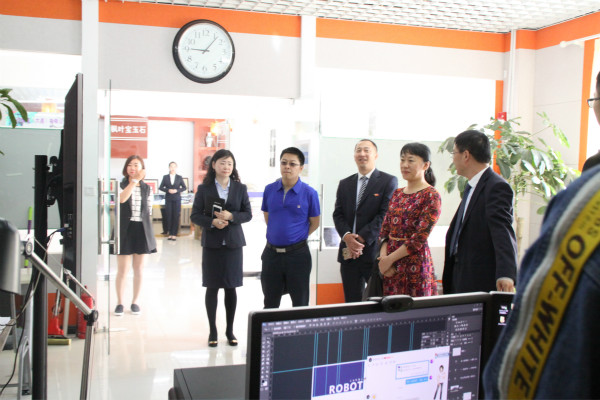 领导参观奥沙数码科技(大连)有限公司 右一杨捷院长 右二李颖副局长