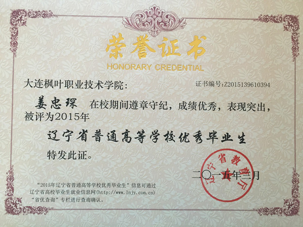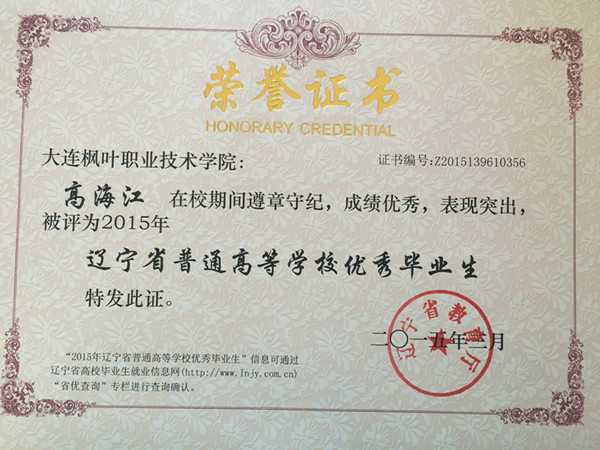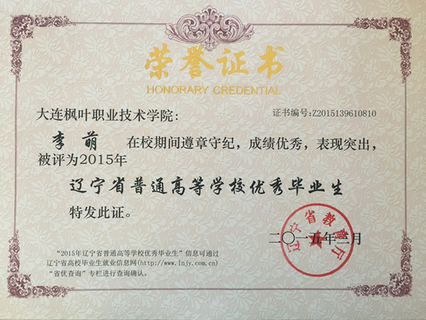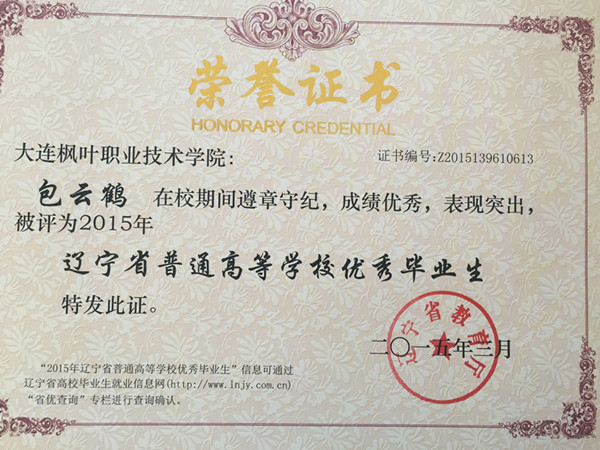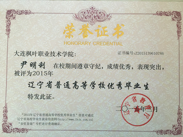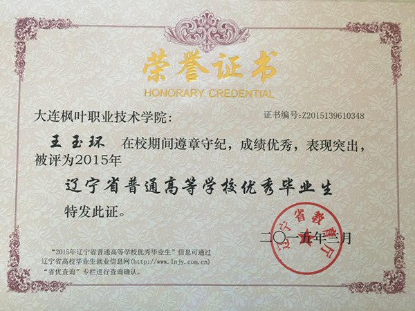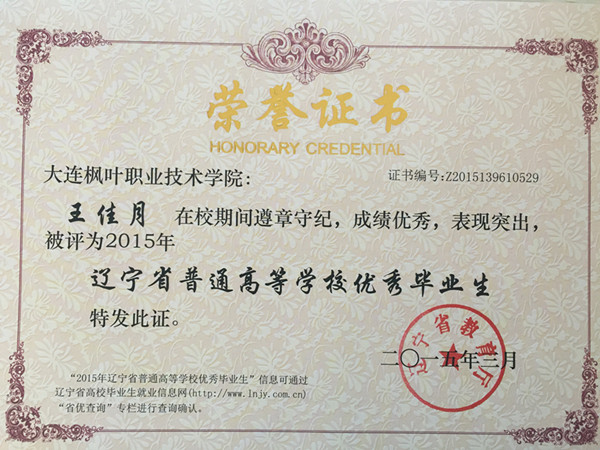 2015年我院毕业生共计1335人,本届毕业生在校期间,积极投身校风学风建设,勤奋学习,勇于实践,为学院发展和建设做出了积极贡献,涌现出了一批德、智、体、美等各方面全面发展的优秀毕业生。根据 《教育部关于做好2015年全国普通高等学校毕业生就业创业工作的通知》(教学[2014]15号),学院本着公开、公平、公正的原则,经过本人申请、材料报送、学院审核、上级批准等程序,评选出报关与国际货运专业王玉环、韩蕊、姜忠琛、管振松、苏明超、曹帅、尹明利、李萌、高海江、赵洋,图形图像制作专业杨柳,船舶工程技术专业黄飞、杨成广、王厚松,动漫设计与制作专业宋宪超,国际邮轮乘务专业包云鹤,宝玉石鉴定与加工技术专业王明,应用英语专业王佳月18名辽宁省普通高等学校优秀毕业生。希望受表彰的同学谦虚谨慎、戒骄戒躁、再接再厉,在迈入社会、走上工作岗位之后,能运用所学的知识和掌握的技能不断开拓创新,积极进取,在工作岗位上再创佳绩,为母校争光,为祖国的建设奉献自己的青春和才智。