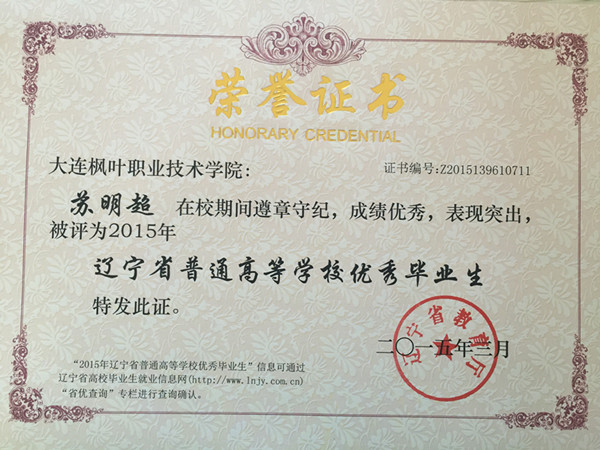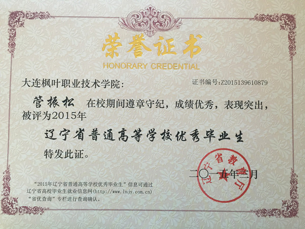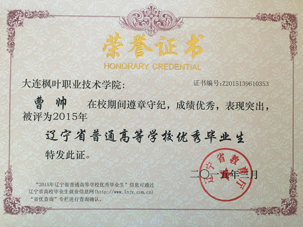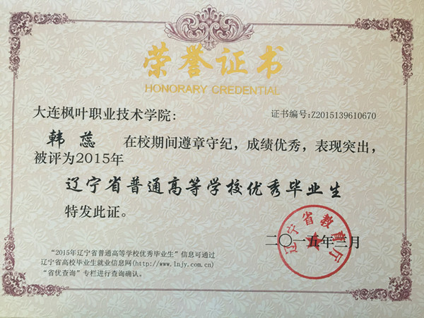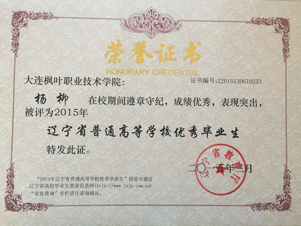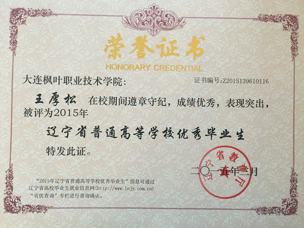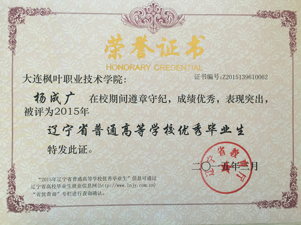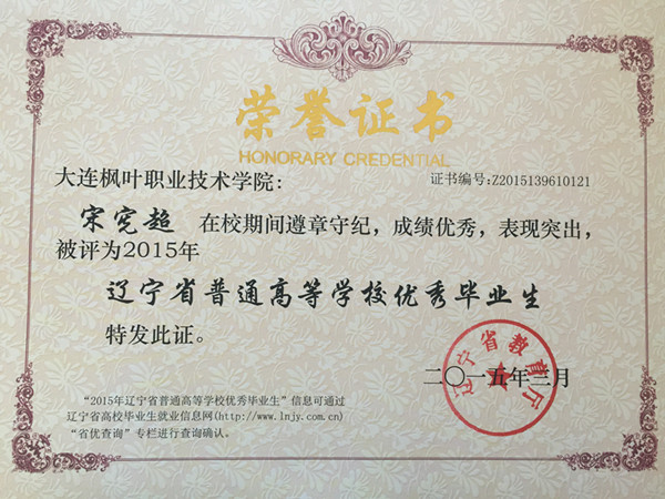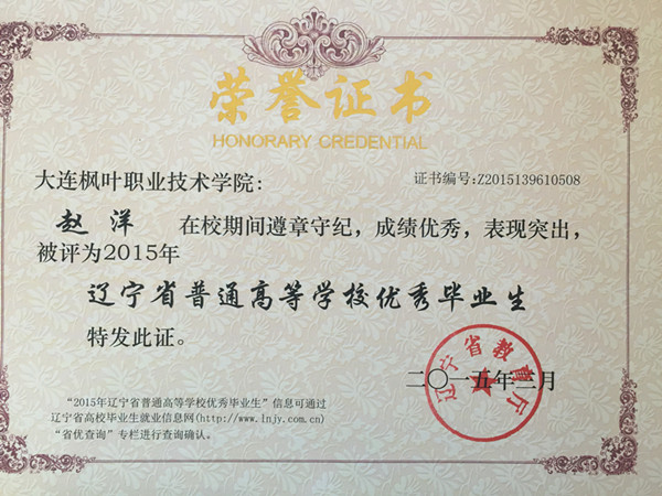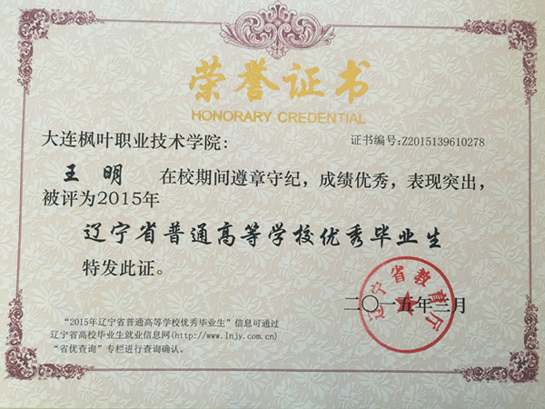 喜报——我院荣获辽宁省普通高等学校2015届优秀毕业生称号名单
