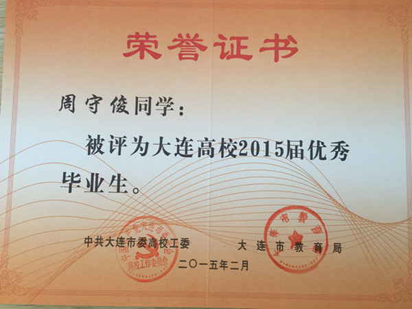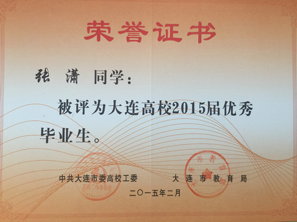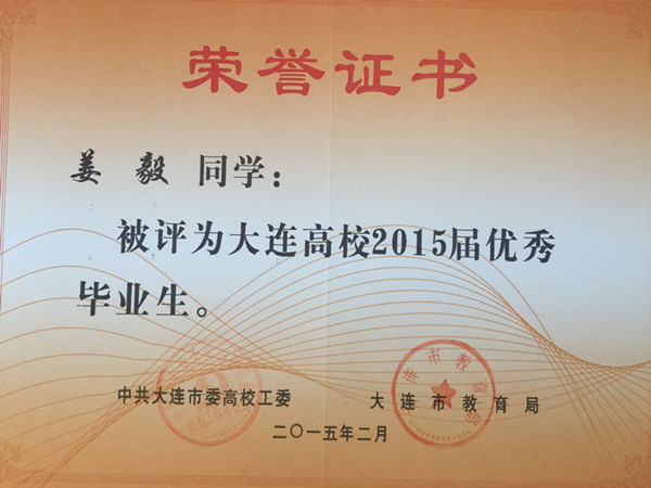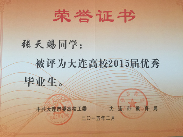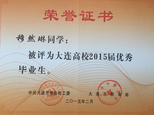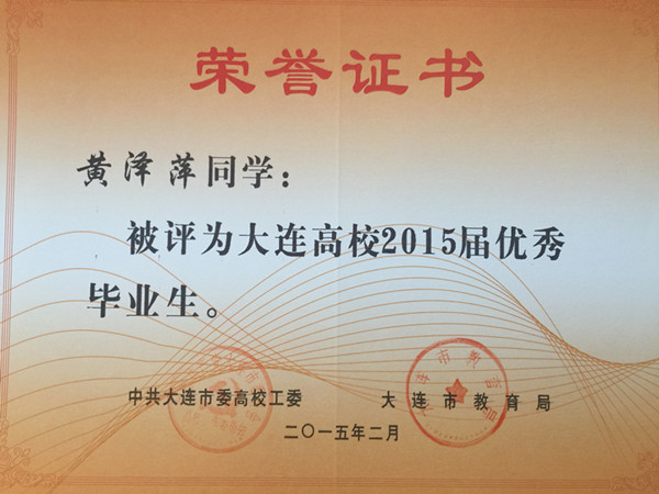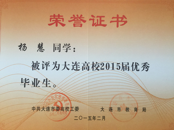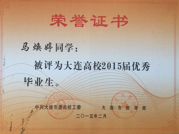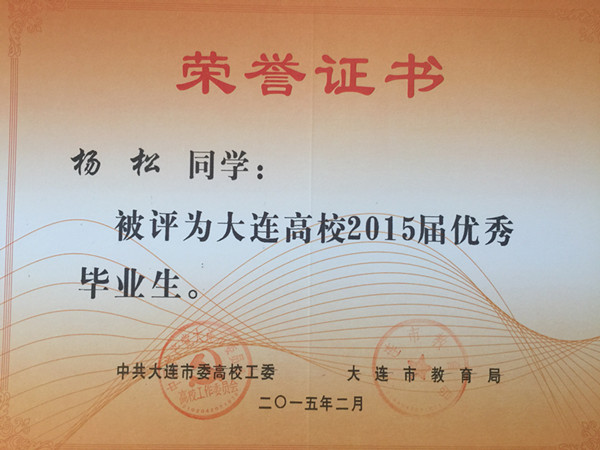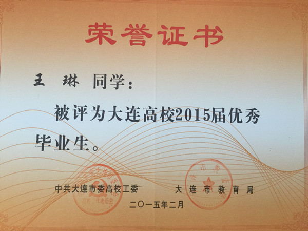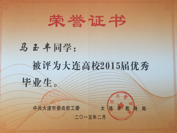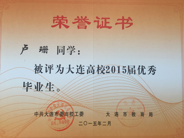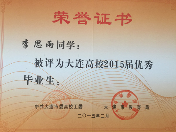 喜报——我院荣获大连高校2015届优秀毕业生称号名单