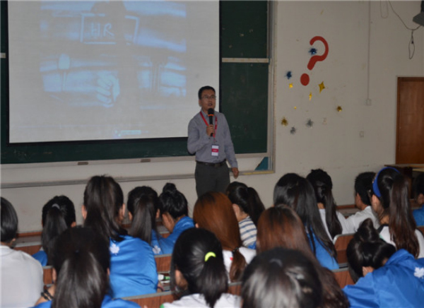 张总监首先通过自己的履历为大家讲述了如何实现自我突破,只要你想做,没有什么不可能。接着是一个岗位测试——走迷宫,简单的测试为学生对自己的职业方向定位提供了参考依据,增加了同学们的自信心,坚定了自己的目标。又从当今毕业生的人数、求职者学历、大学生薪酬期望值等方面帮助大家摆正就业心态,并建议大家择业要秉承大型企业看文化,中性企业看行业,小型企业看老板的原则。张总监还耐心地从社交礼仪方面教大家如何打造工作魅力,如何在最短的时间内得知面试官的期望。讲座最后张总监带来了一个职位,招募一名学生作为中华英才网的校园大使,希望我们的学生可以面试成功。