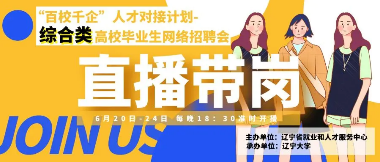 为深入贯彻落实党中央、国务院关于“稳就业”“保就业”决策部署,切实做好“百校千企”人才对接计划的组织实施工作,辽宁省就业和人才服务中心联合省内部分高校开展不同类别的直播带岗活动,以网络招聘为基础推动“百校千企”人才对接计划,祝各位同学顺利就业。