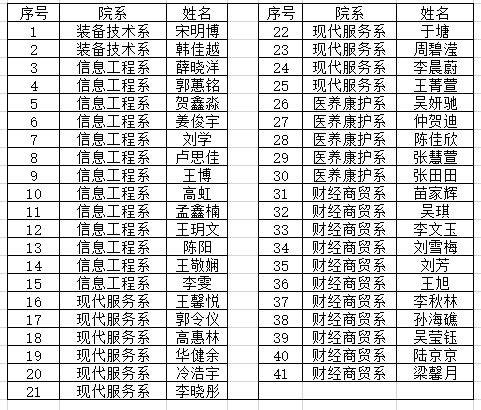 经过本人申请,班级推荐,院系审核等环节共推荐市优秀毕业生41人,现将名单公示如下: