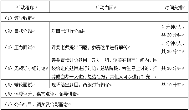 比赛形式:自我介绍+无领导小组讨论+压力面试+辩论面试