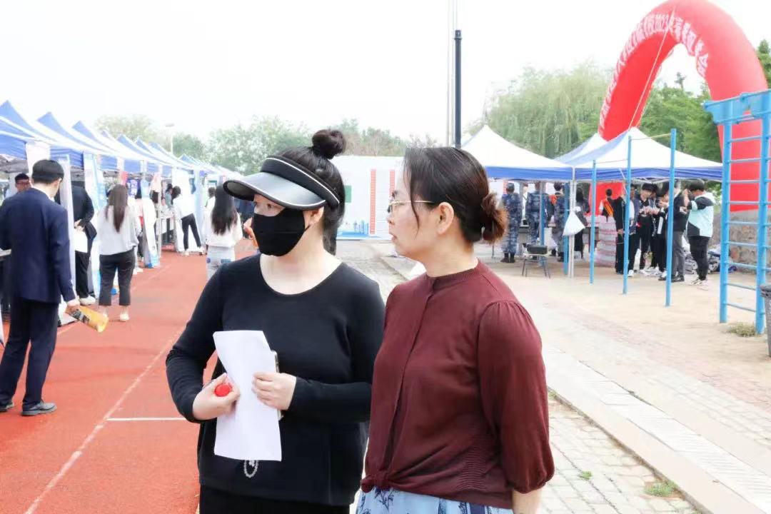 校长杨捷、党委书记申秀梅、副院长解建国、金晓晖以及五系主任到双选会现场与用人单位代表深度洽谈,感谢用人单位长期以来对学校就业工作和人才培养的大力支持,了解单位需求;与参加双选会学生进行沟通交流,了解学生就业情况并且鼓励学生,增强他们的就业信心。
