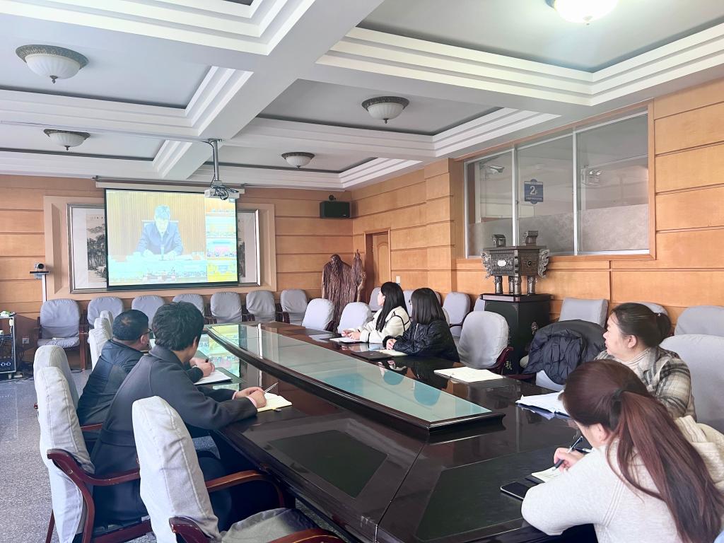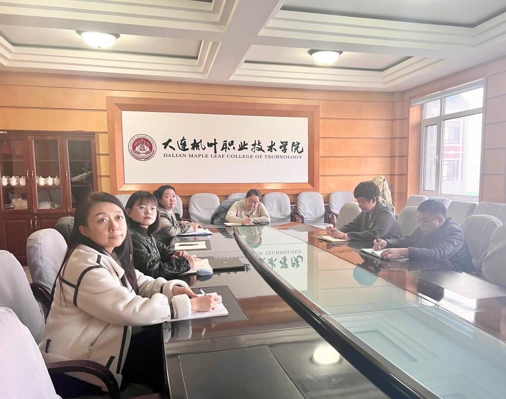 大连枫叶职业技术学院院长助理张冬冬,教务处处长、财经商贸系主任初金美,医养康护系主任、马克思主义学院院长王珊,信息工程系主任王晓琳,装备技术系主任于杉,现代服务系主任闫博,创业就业办主任张晓洁于1号楼二楼会议室共同参会学习。