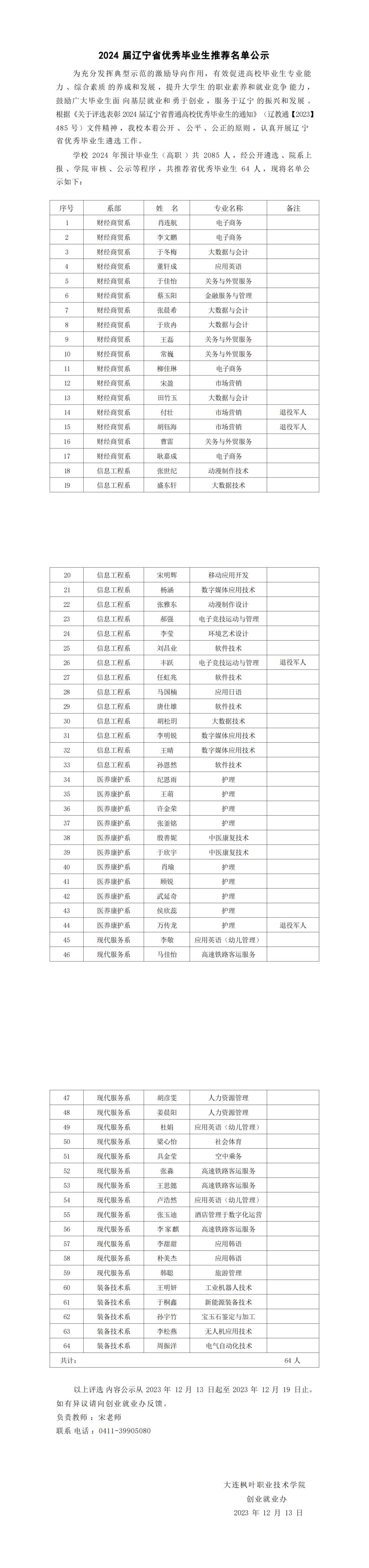 【通知】|2024届辽宁省优秀毕业生推荐名单公示