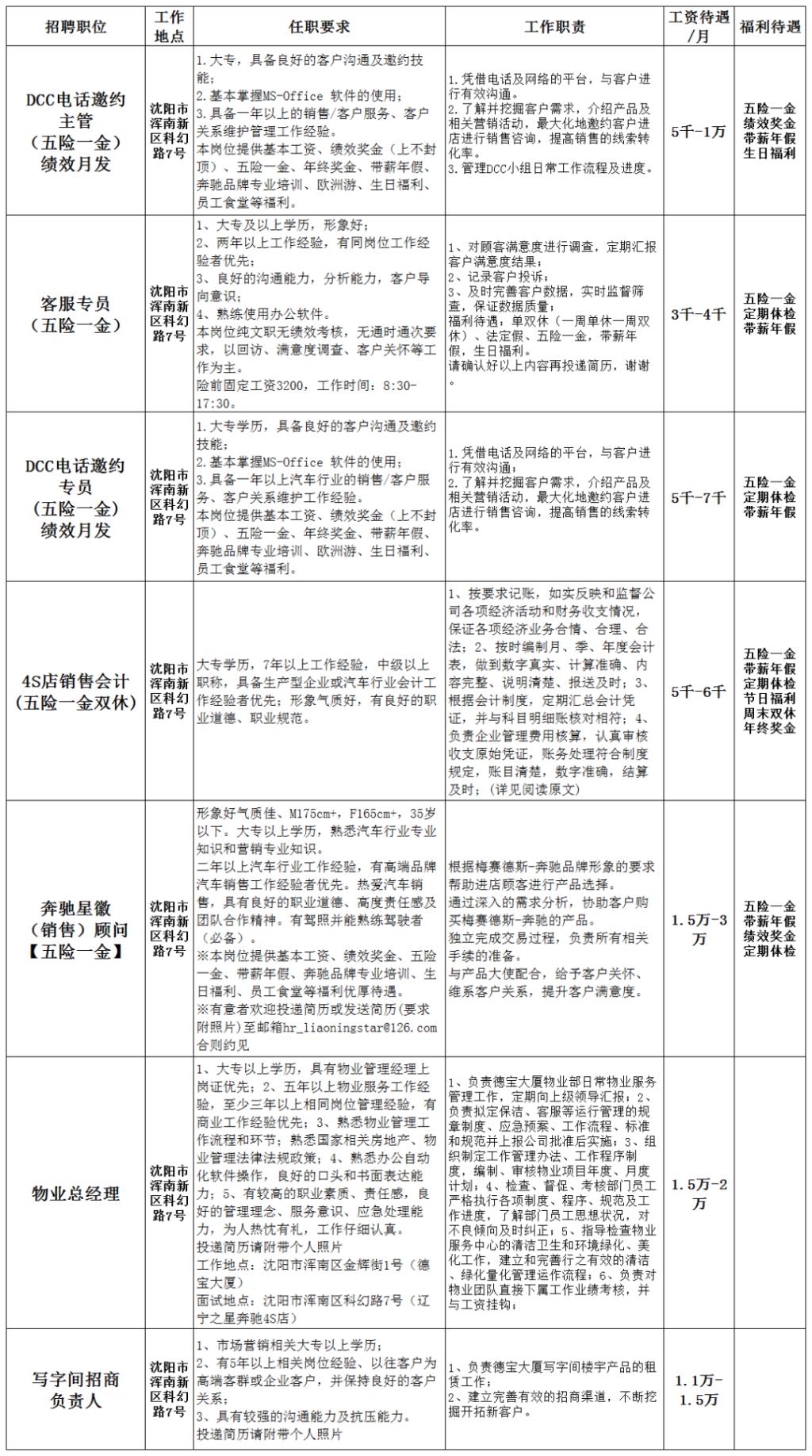 招聘信息|奔驰辽宁之星
