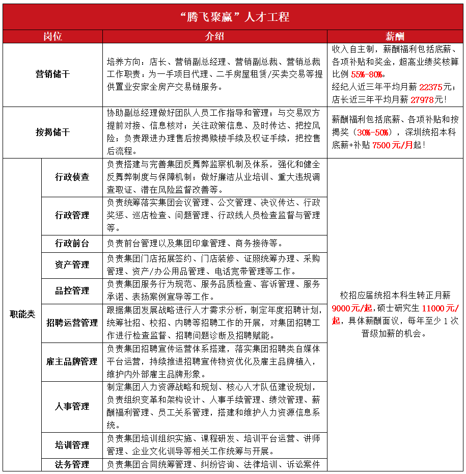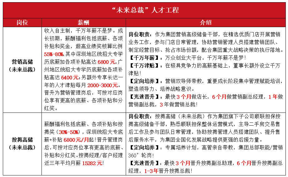 ◆工作地点:营销储干可就近安排,具体地址可联系面试官,其他岗位前期大部分在深圳