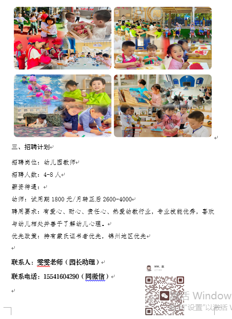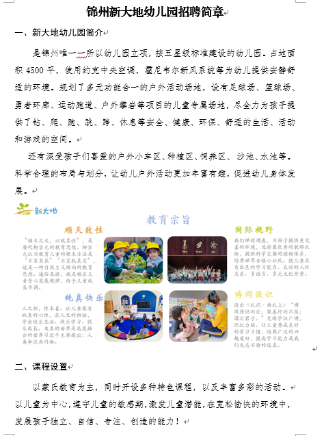 招聘信息|锦州新大地幼儿园