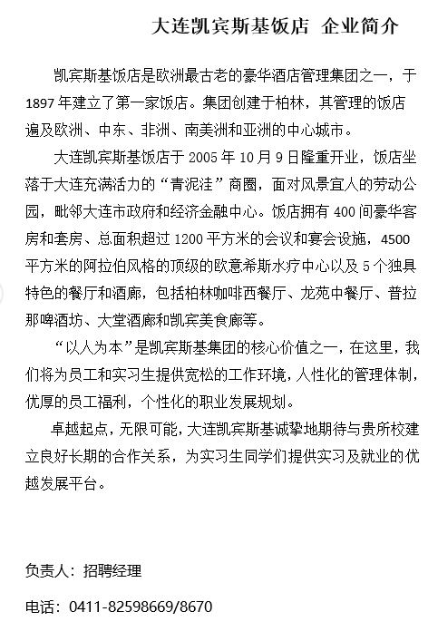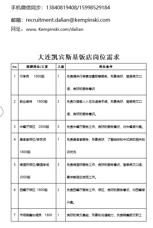 招聘信息|大连凯宾斯基饭店