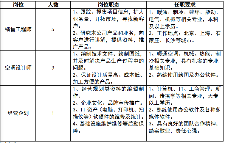 招聘岗位信息:
