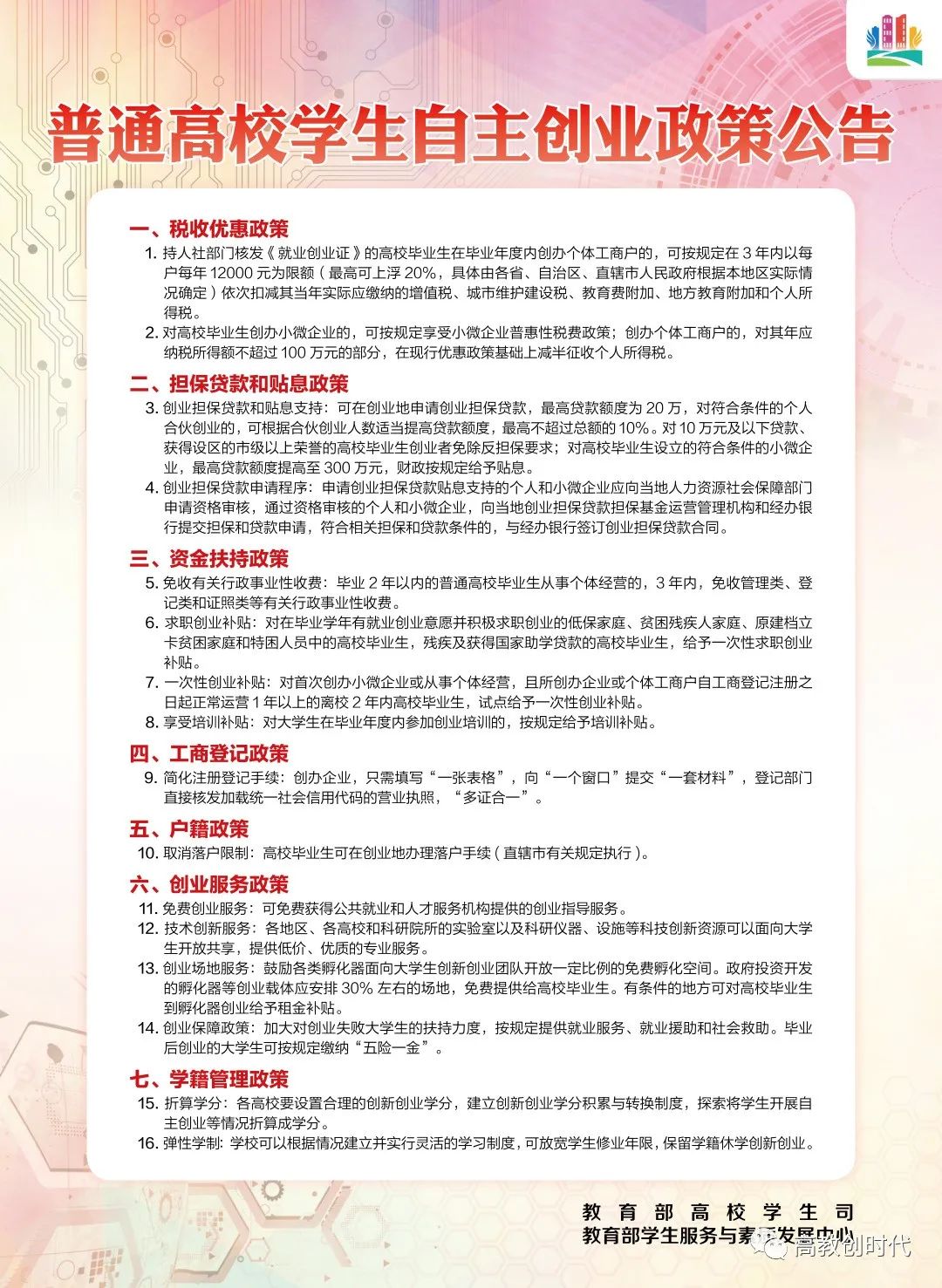 高校学生自主创业政策