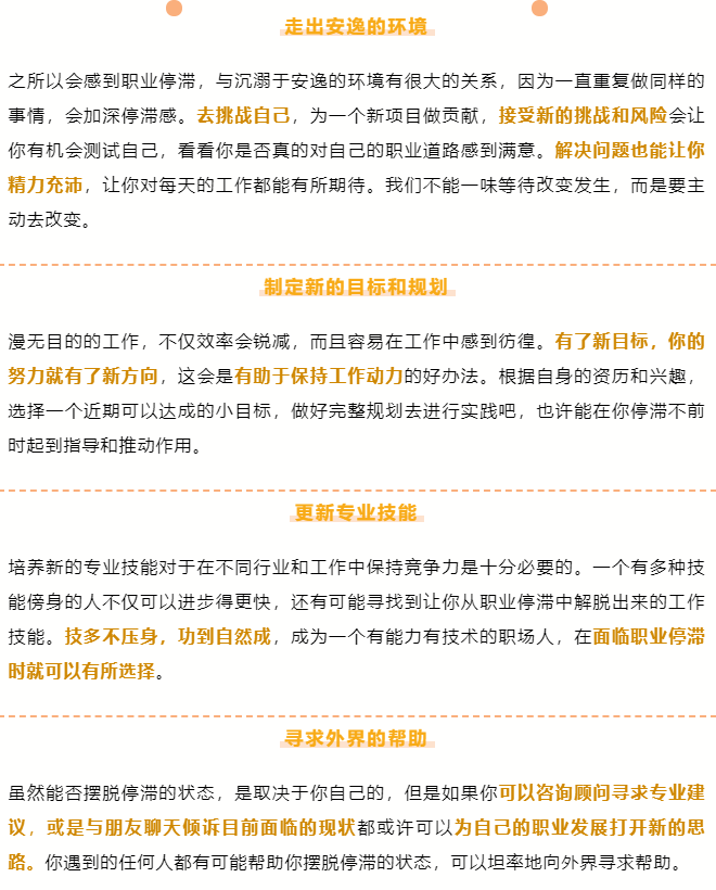 如果你承认自己的职业已经停滞不前,这已经是做出改变以重振你的职业生涯重要的第一步。无论你是感到枯燥还是不被赏识,你都可以采取一些措施来克服职业停滞。